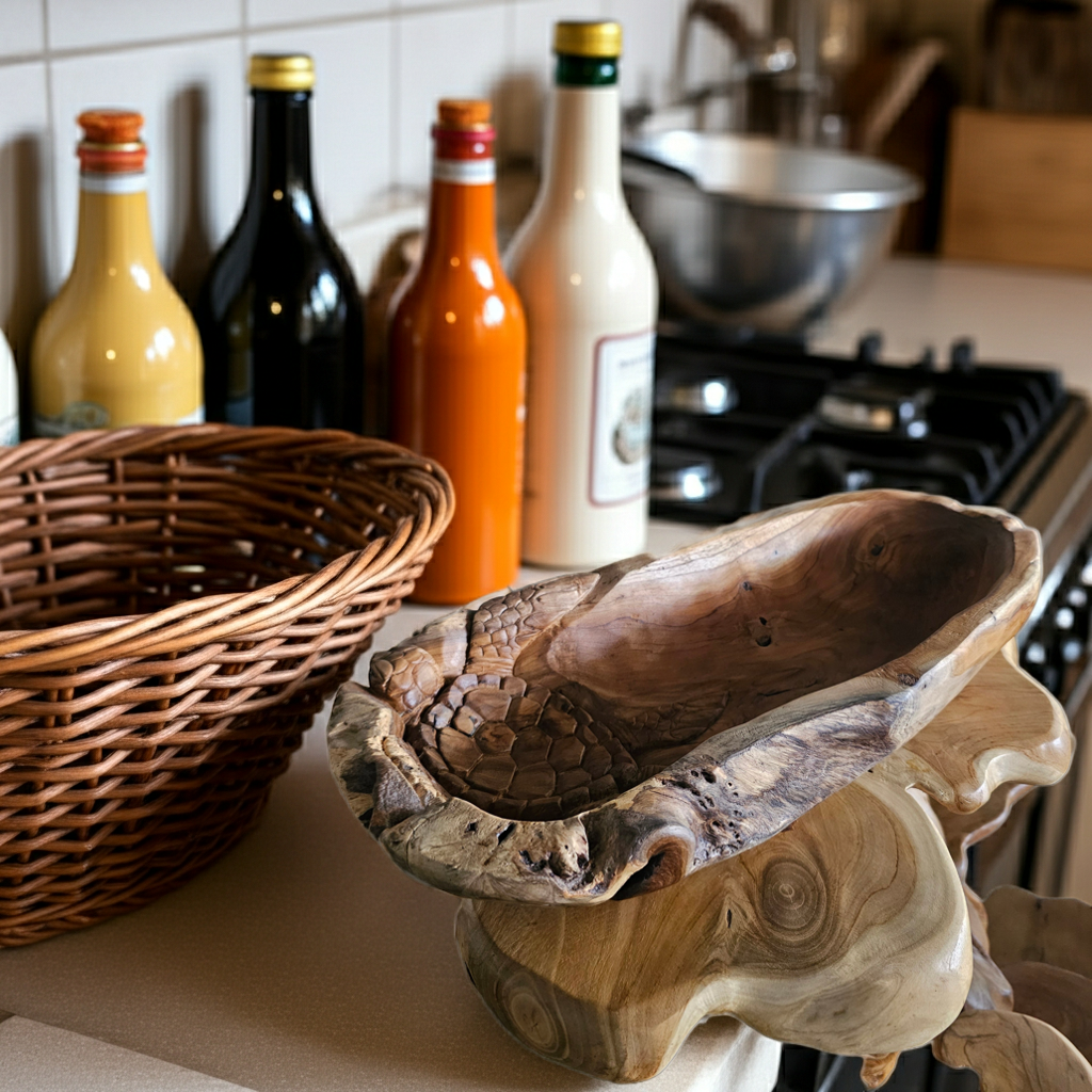 Fruitbowl Model Sumba with hand carved turtle.