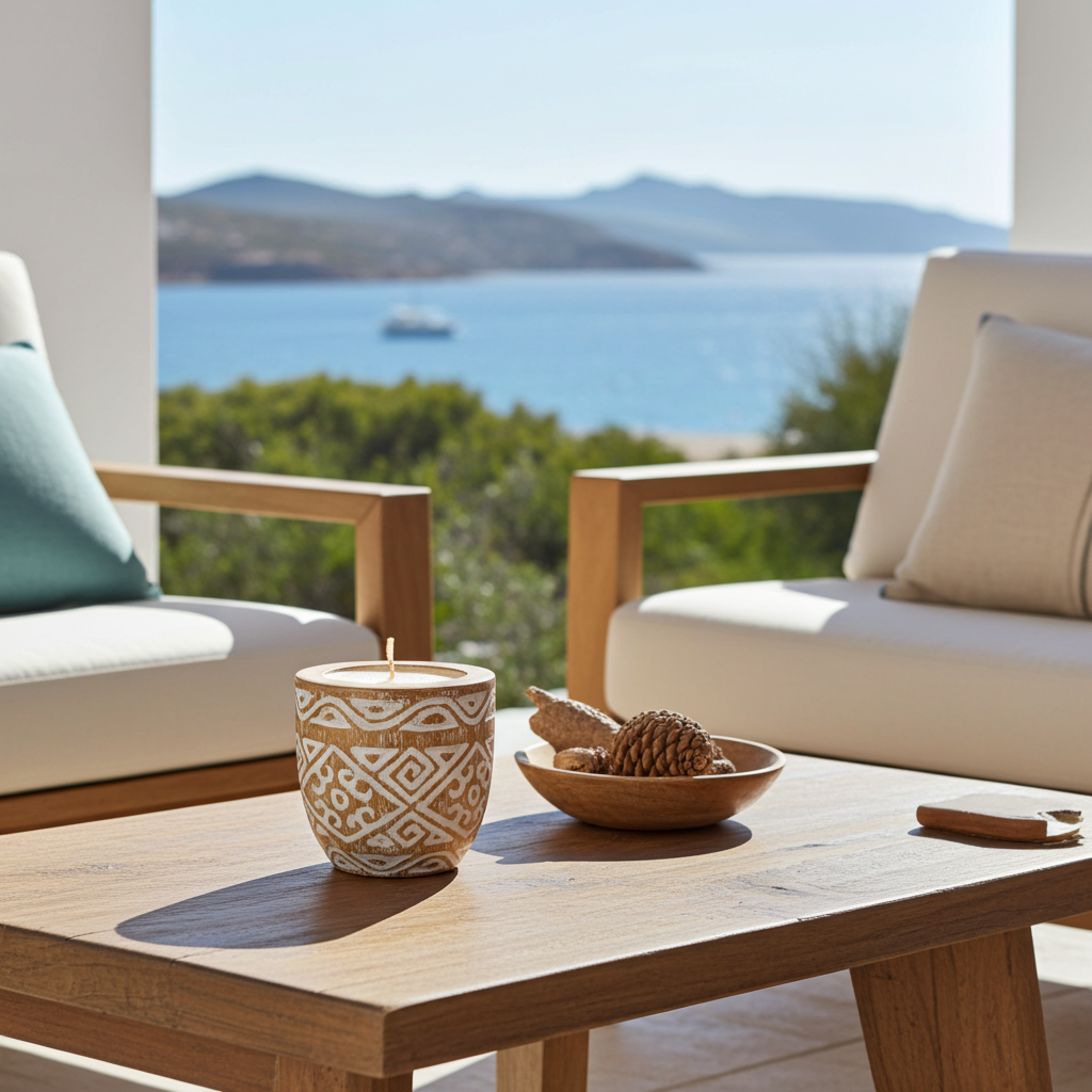 Hand-carved wooden candle in a whitewashed finish. Due to their handcrafted nature, each piece may have slight variations in the carving and finish, contributing to its unique character. The height of the candle is aprox 15cm