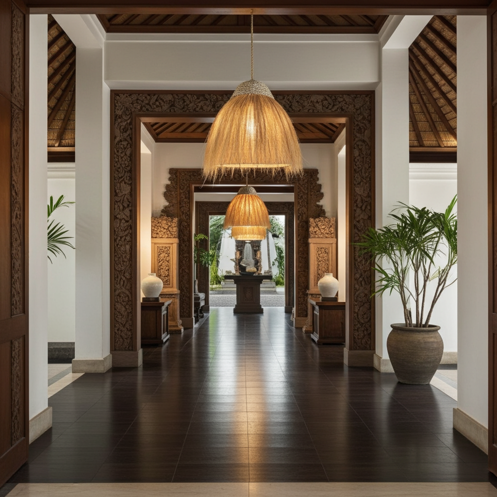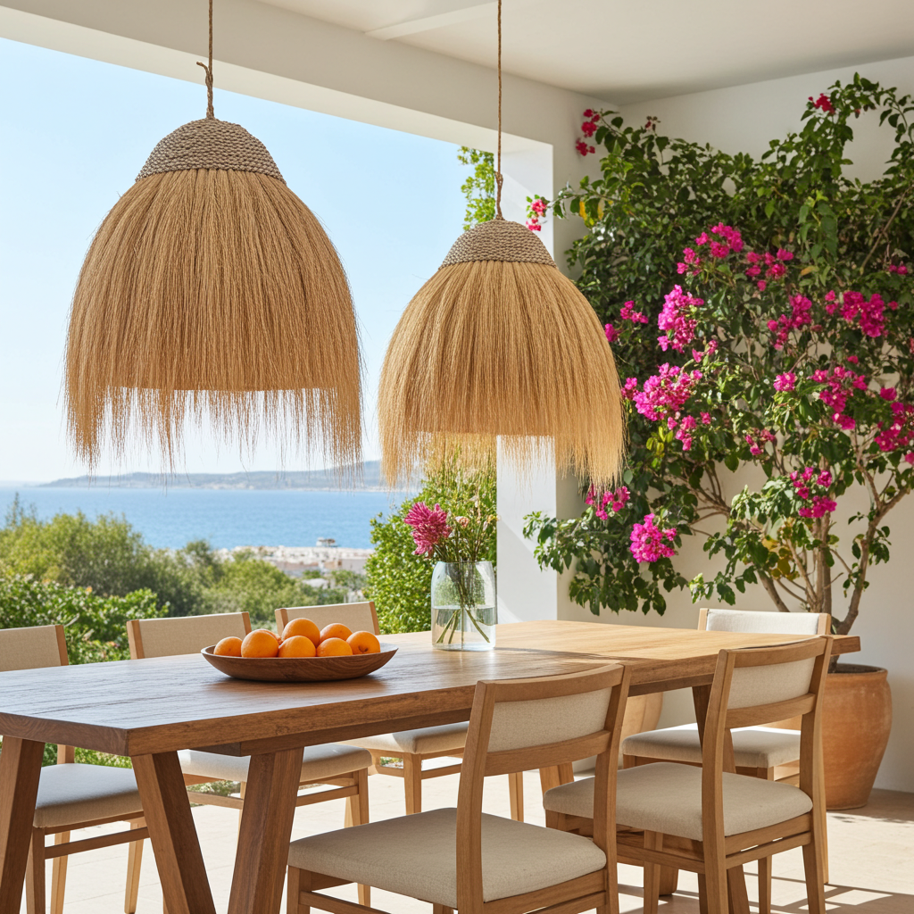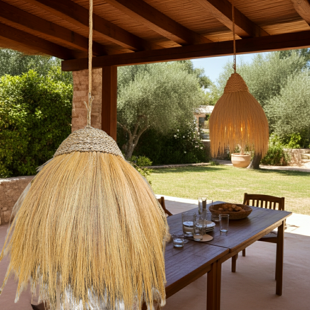 Hanglamp fisnihed with Alang Alang grass. Model Rayung in two sizes.