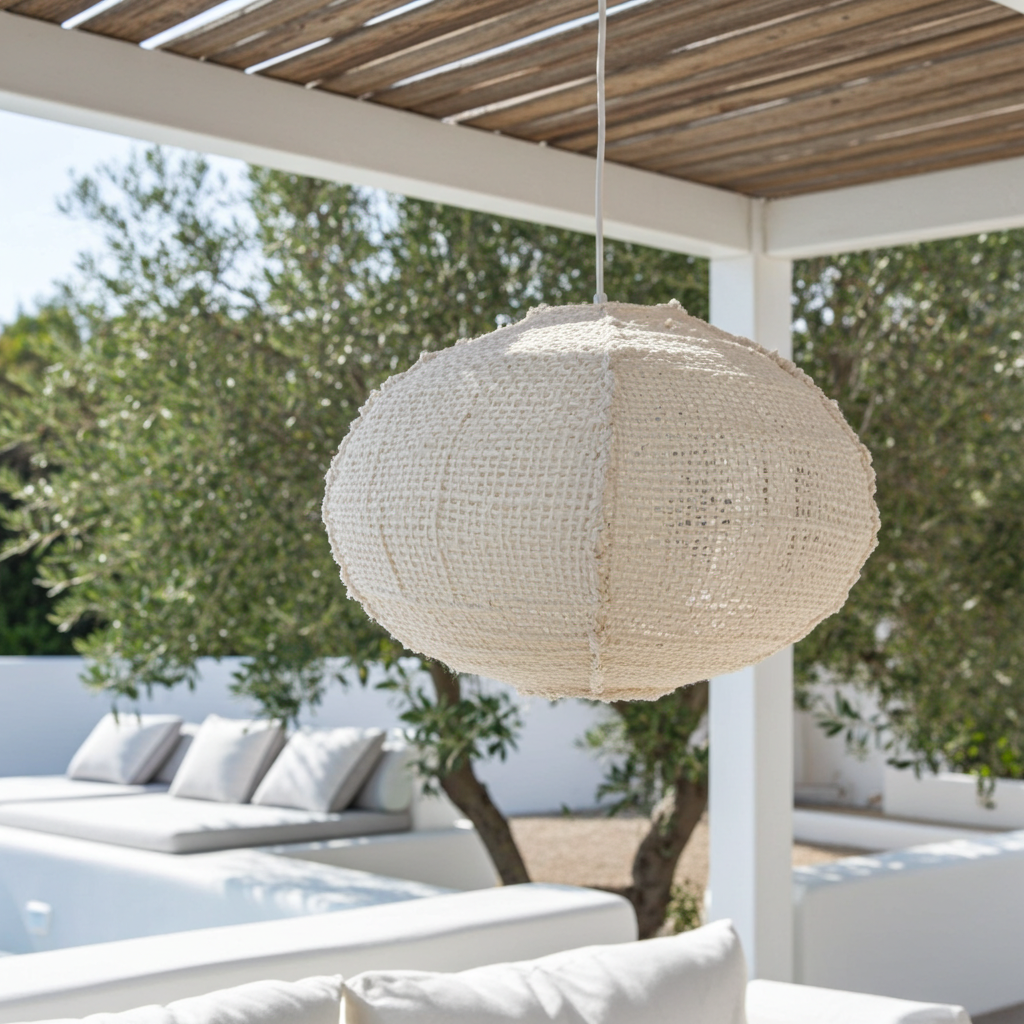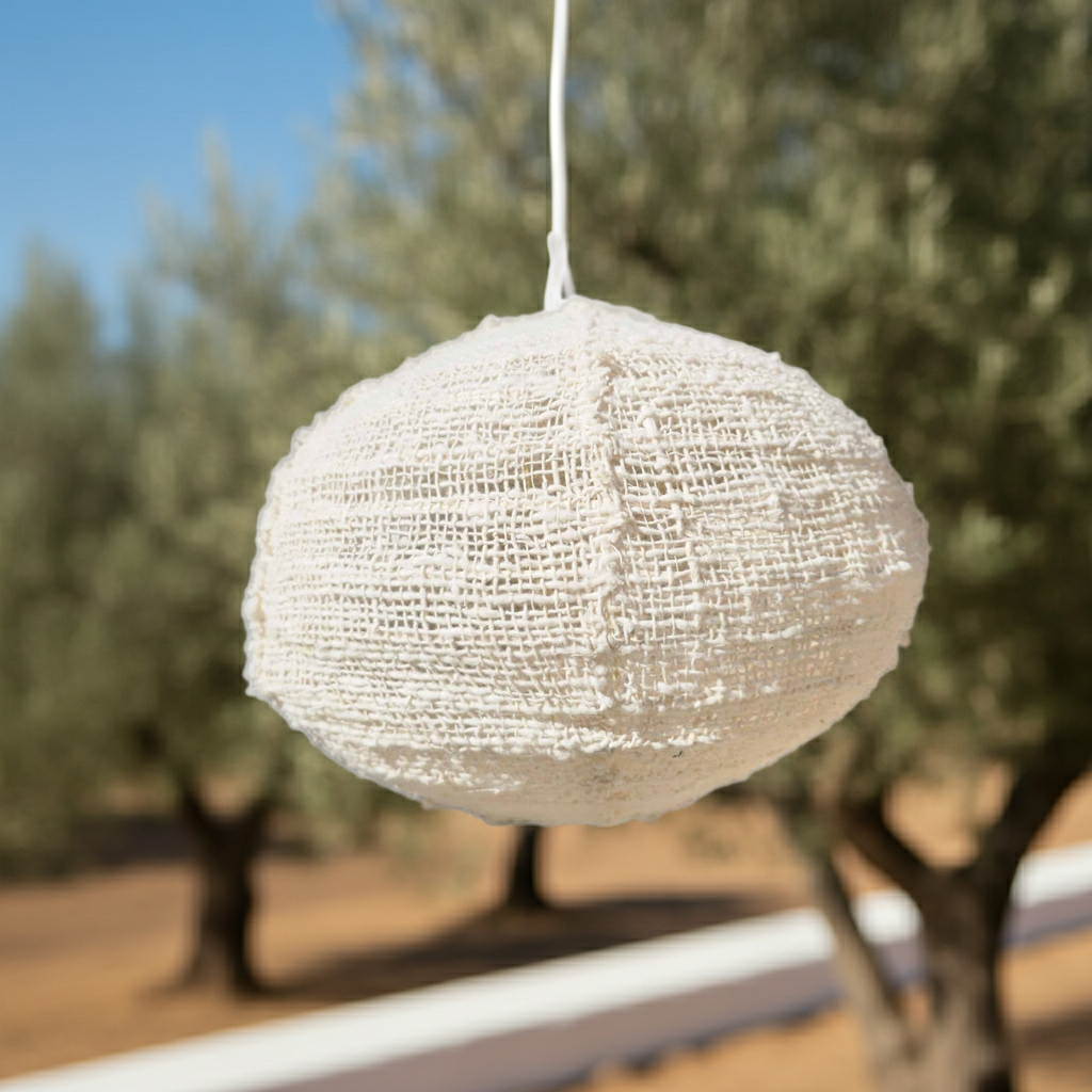 Handmade lampion hanglamp. The lamp is made from pieces of cotton and fragile. It has be treated with care. It