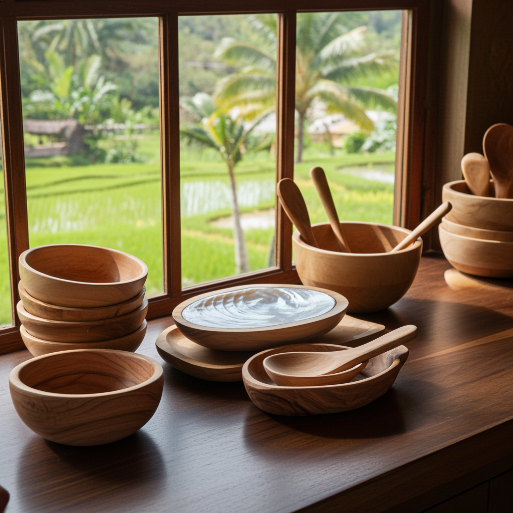 Made from hardwood and feature an iridescent shell lining, made by artisans in Bali