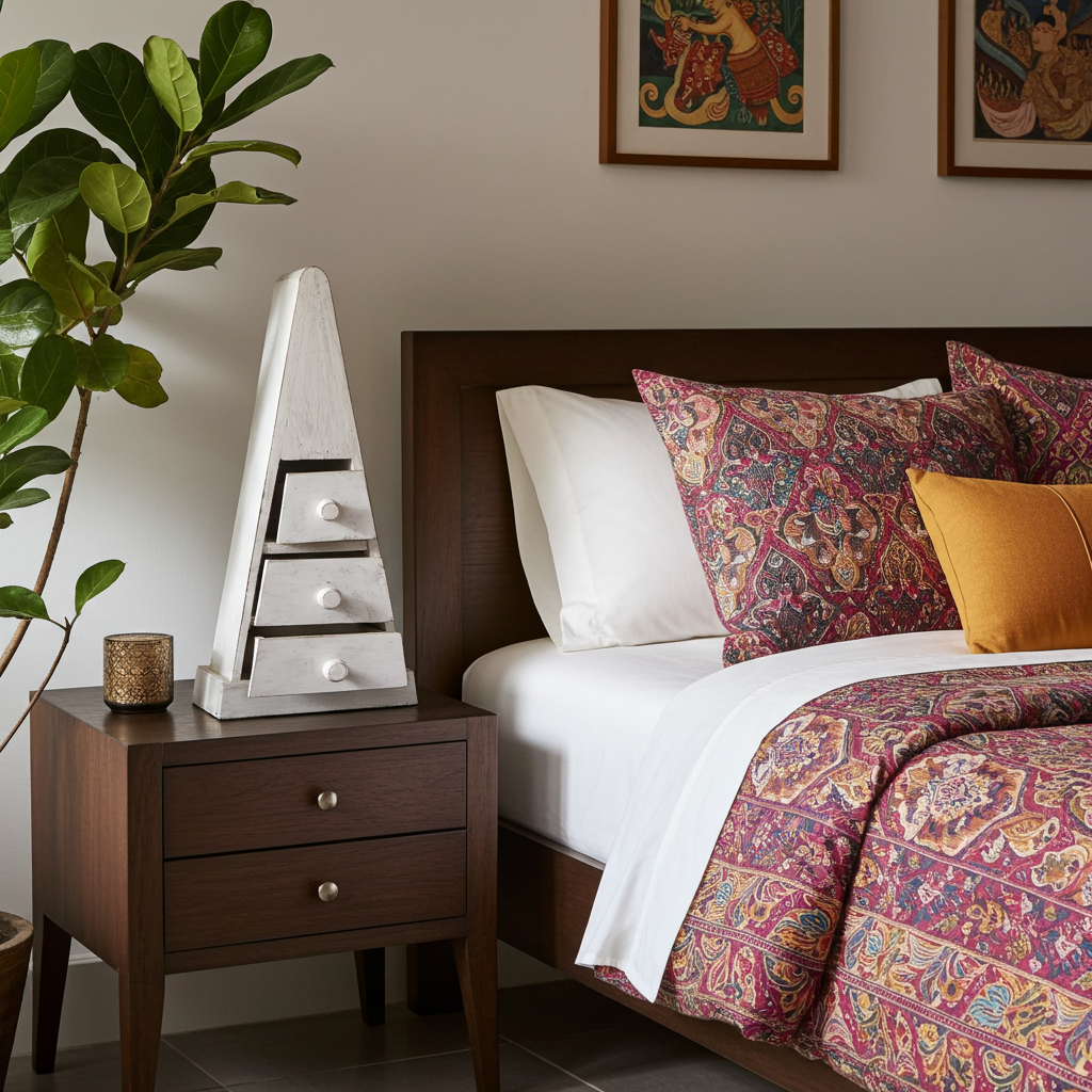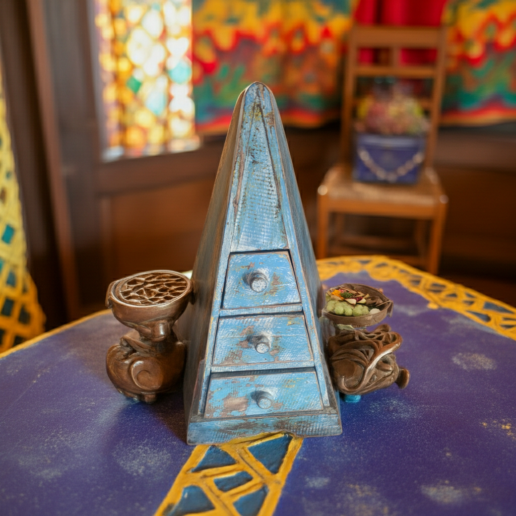 Pyramid shaped cabinet with three drawers. The cabinet 50cm tall. It comes in two colors : blue or white/beige