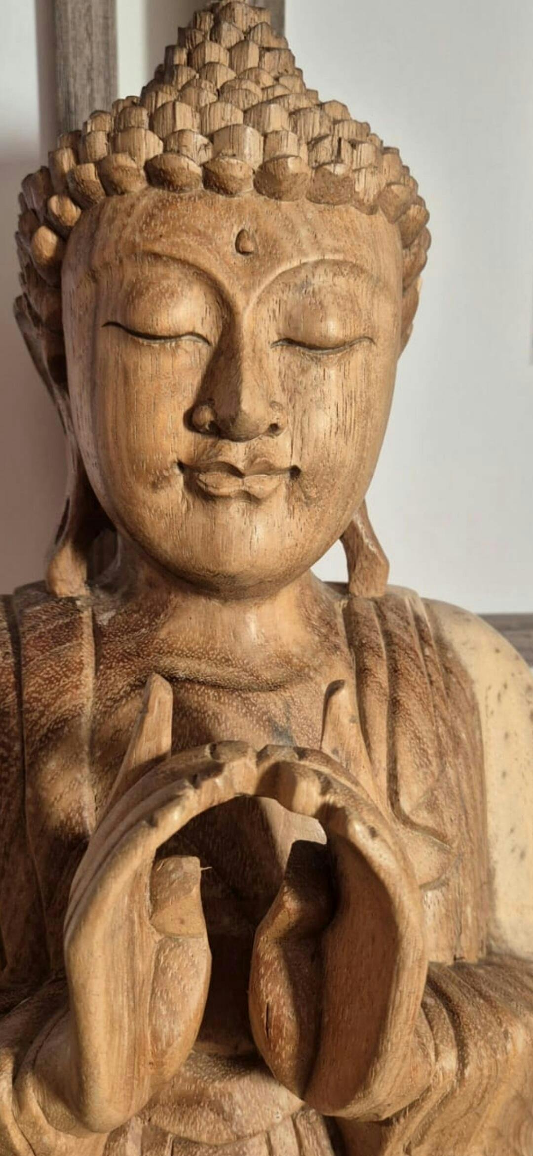 Sitting Buddha Statue 40cm. Wooden handcarved Buddha made from two tone (colors) Saur Wood from Bali. The sizes are aproximately 40cm. The actual size can differ a lttle bit from the one shown in the photo.