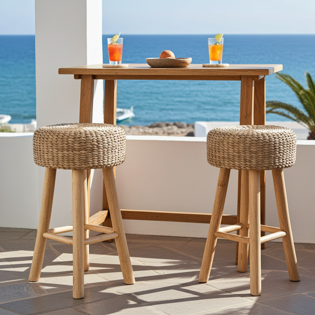 Stool Model Alafan made from wood and waterhyacint