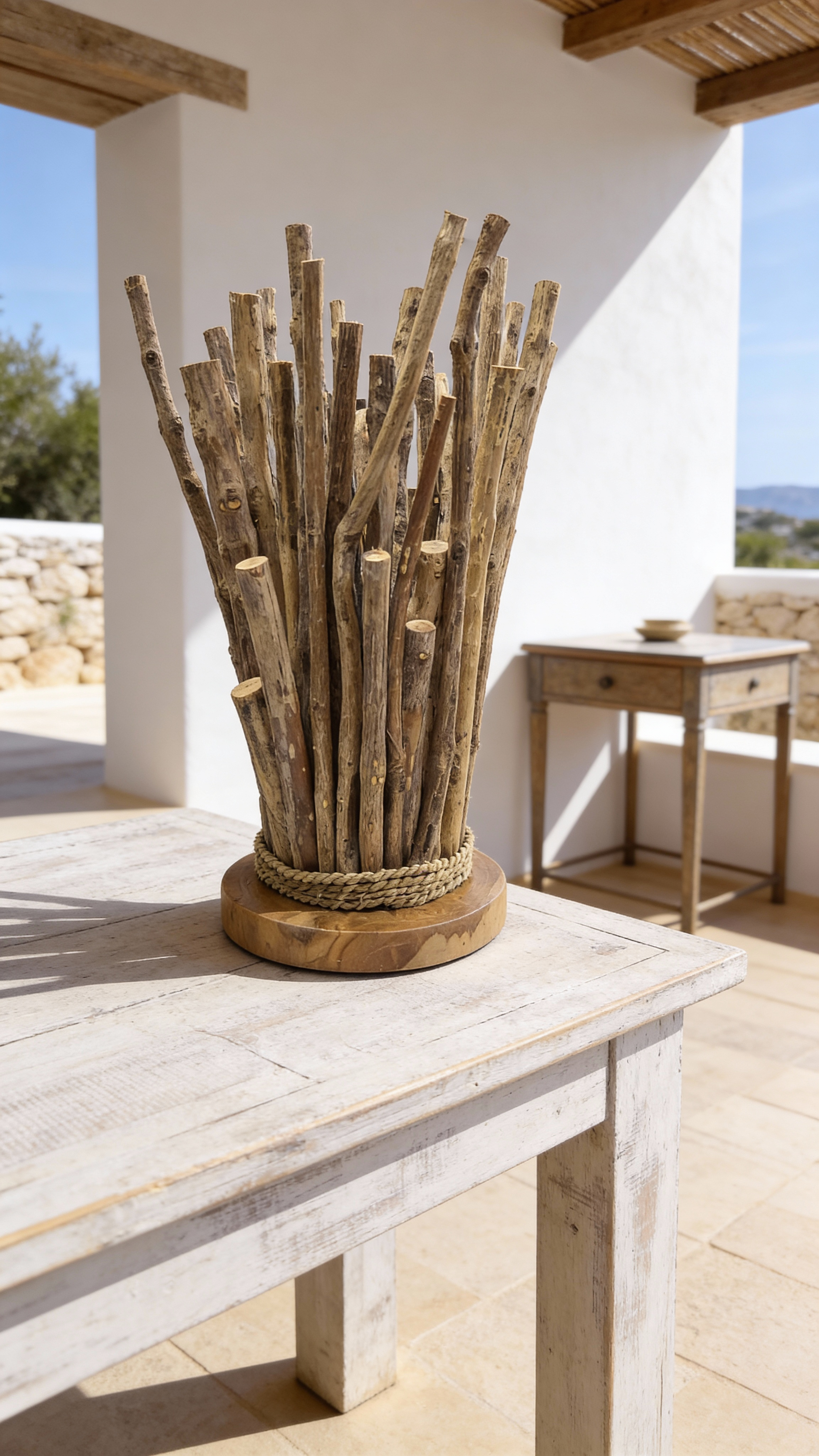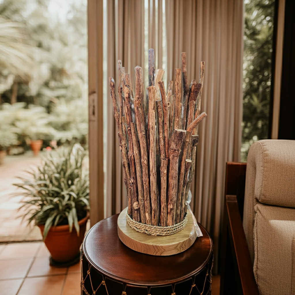 Table lamp Model Tongkat made from short wooden twigs
