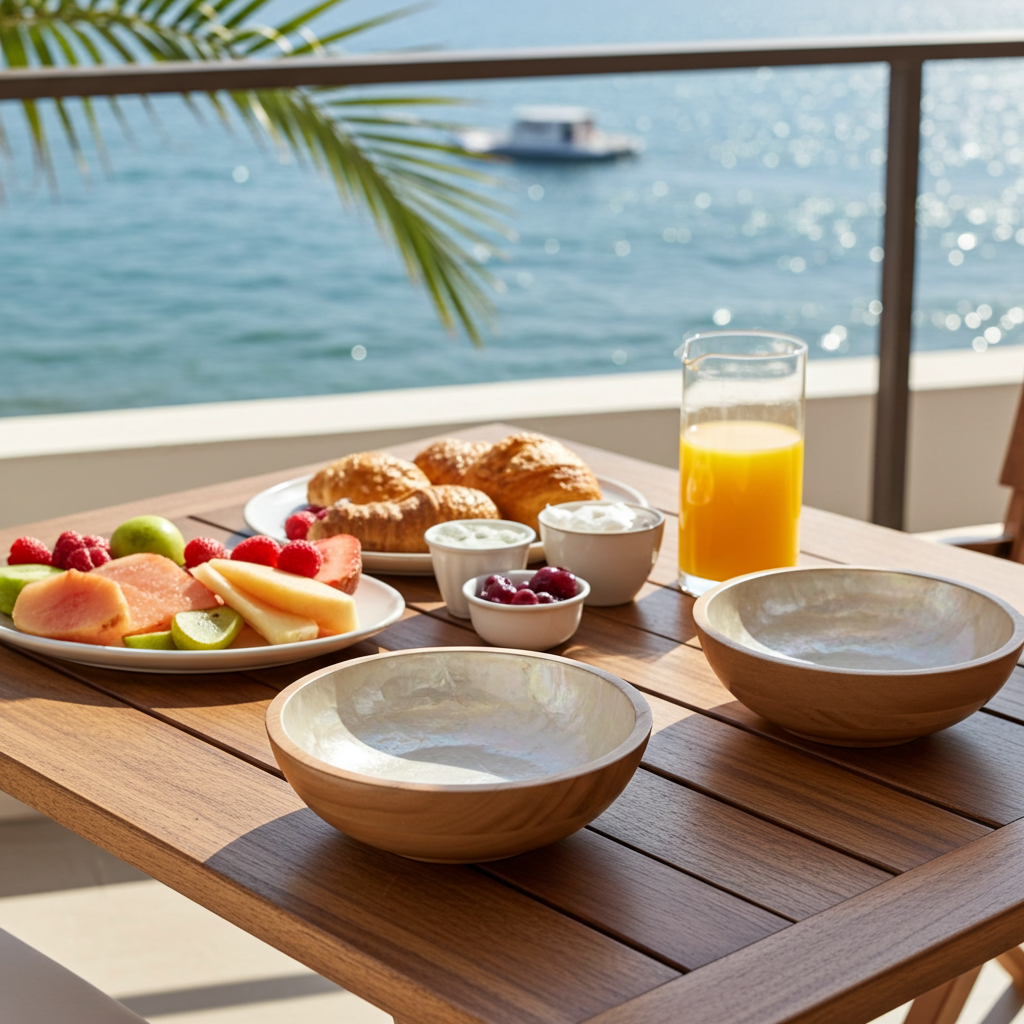 Wooden bowl with white shell finish