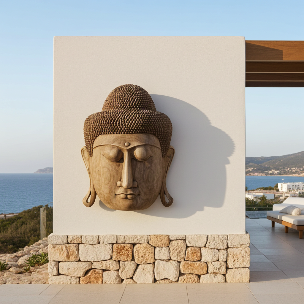 Wooden Buddha Mask Model Kayu 80cm. This mask, like all other wooden handcut masks we offer, is handmade by local families in Balies. The craftsmen are true artisans. The wood used is called Suar wood.