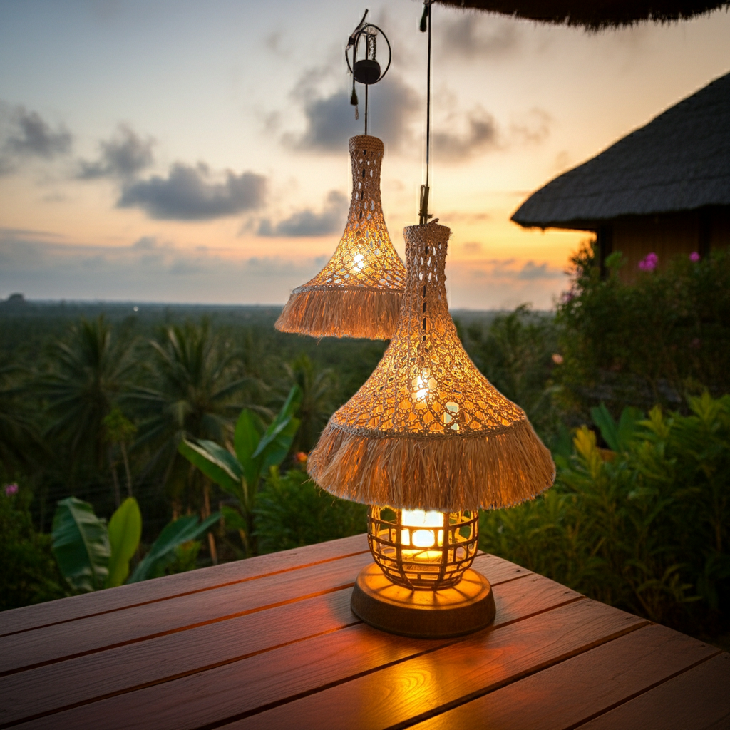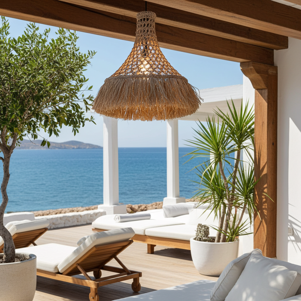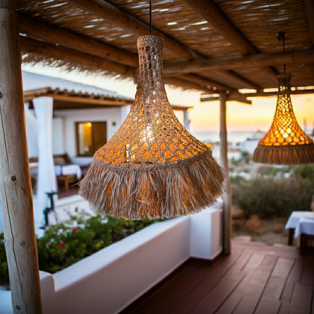 Lámpara colgante Coco Modelo Kipas, fabricada en material de lona natural