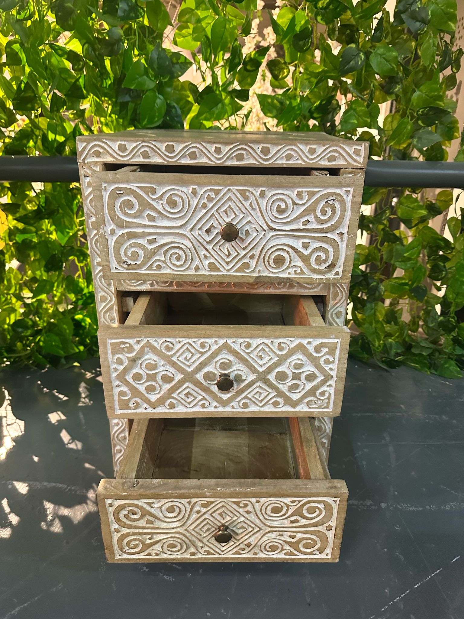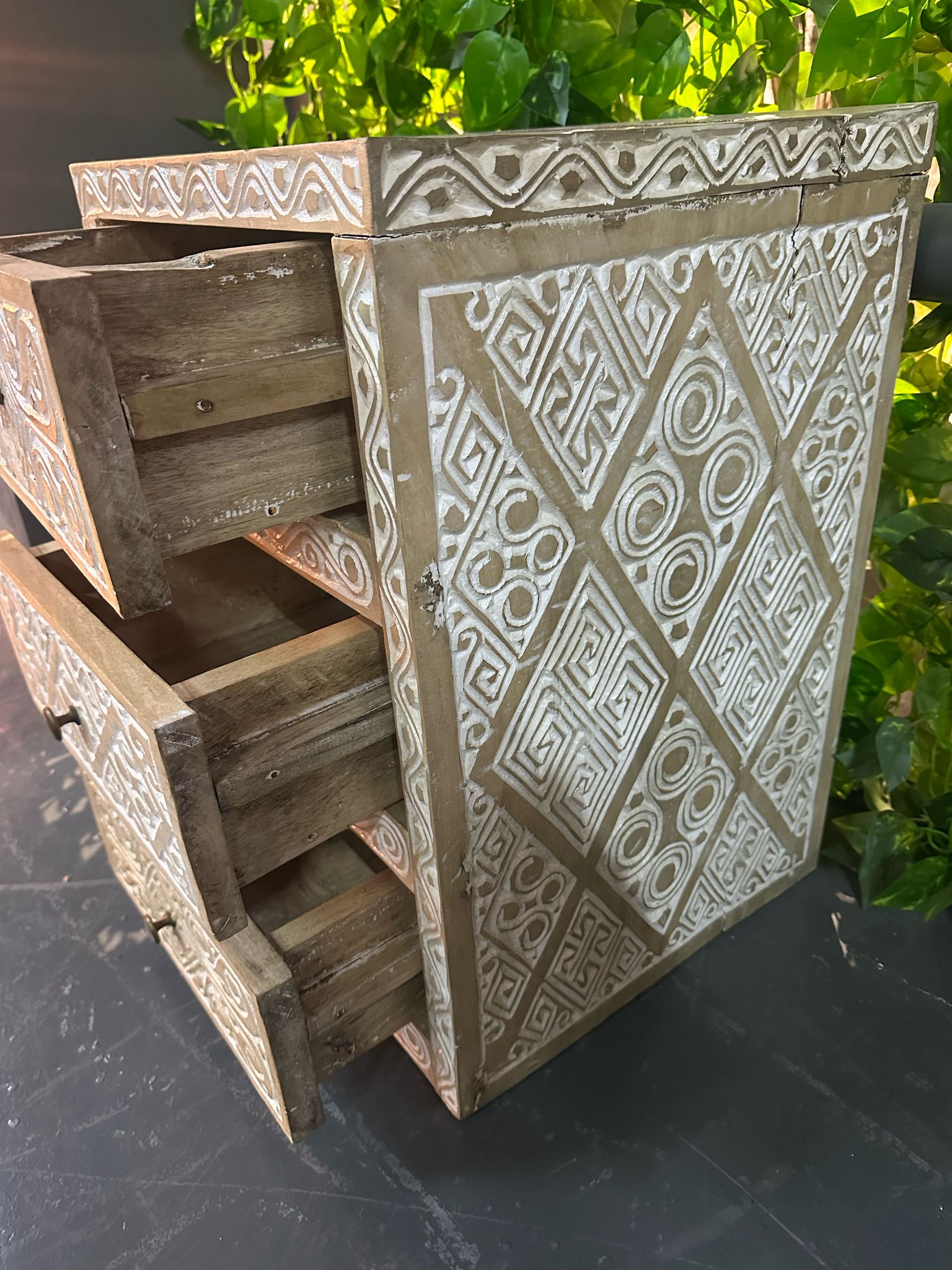 Meet our awesome Timor Wooden Bedside Nighttable! Handmade with love in Bali, it rocks a cool light wooden whitewashed look that screams style. With three drawers, it's the ultimate bedside buddy, keeping all your stuff organized and within arm's reach. Say goodbye to bedside chaos and hello to rustic charm and practicality! This little gem adds a touch of Bali vibes to your sleep space – record yours now and upgrade your nightly routine!