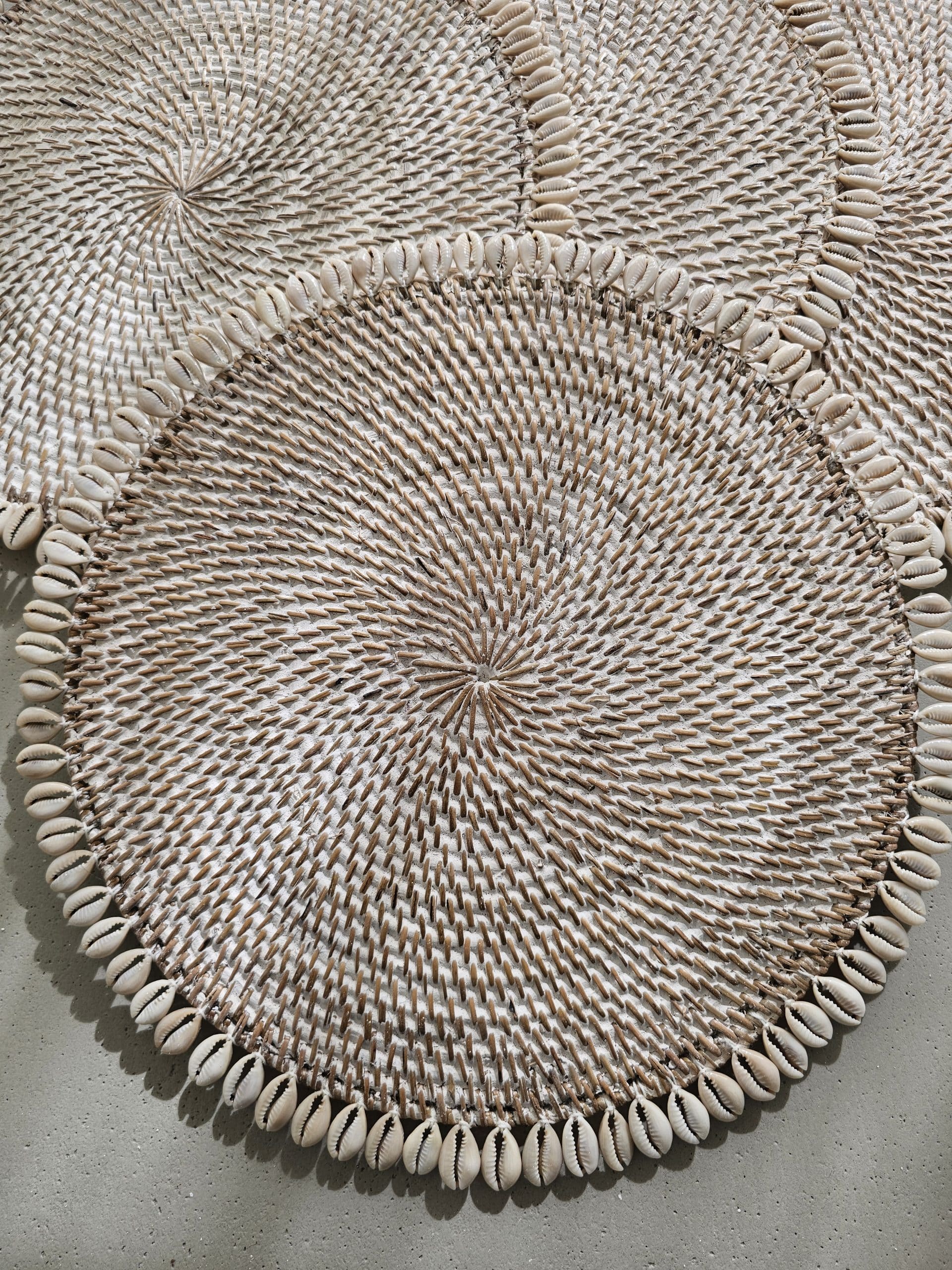 Ratan placemat decorated with shells. They come in two colors
