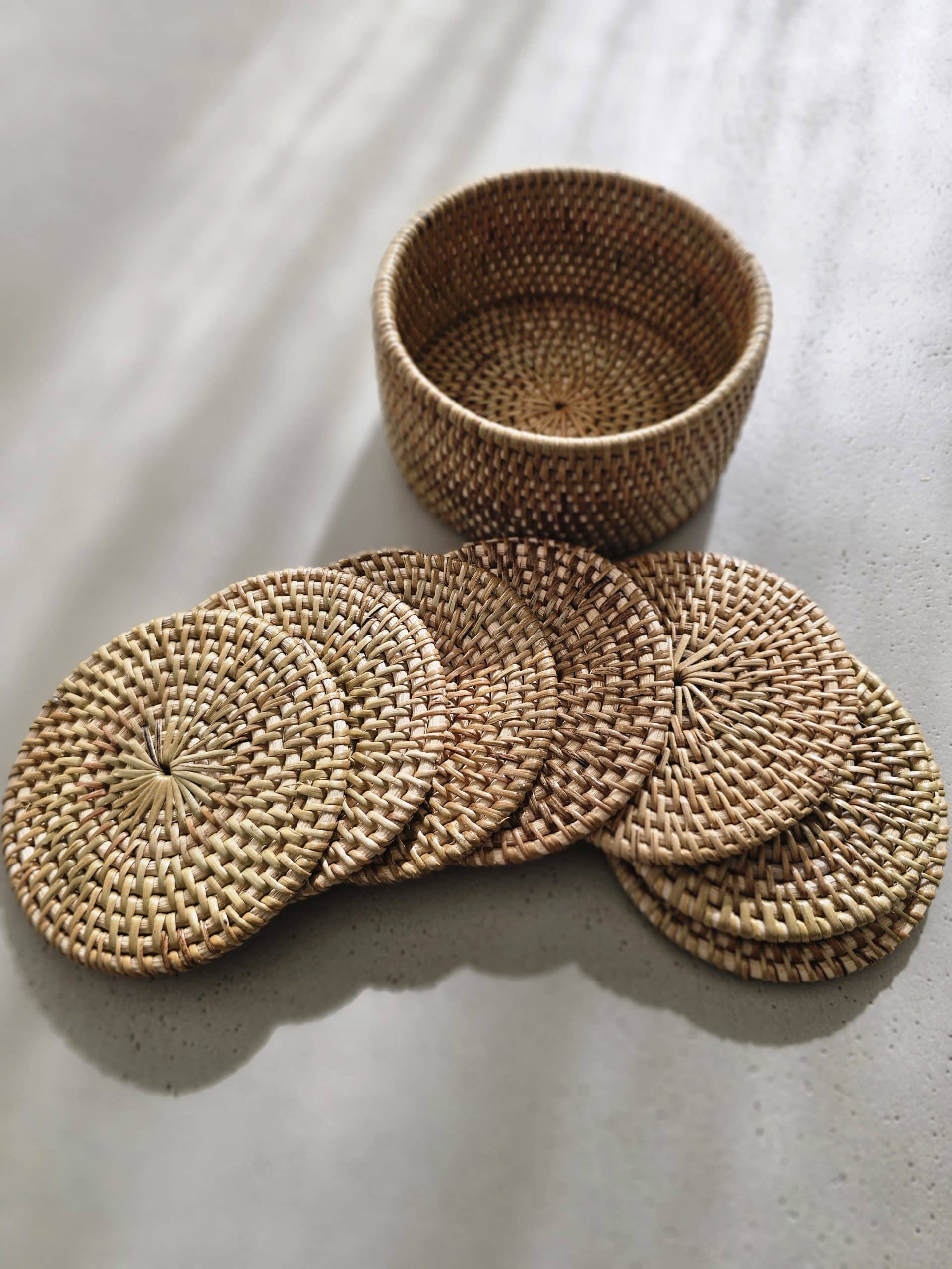 Set of 6 ratan coasters in two colors
