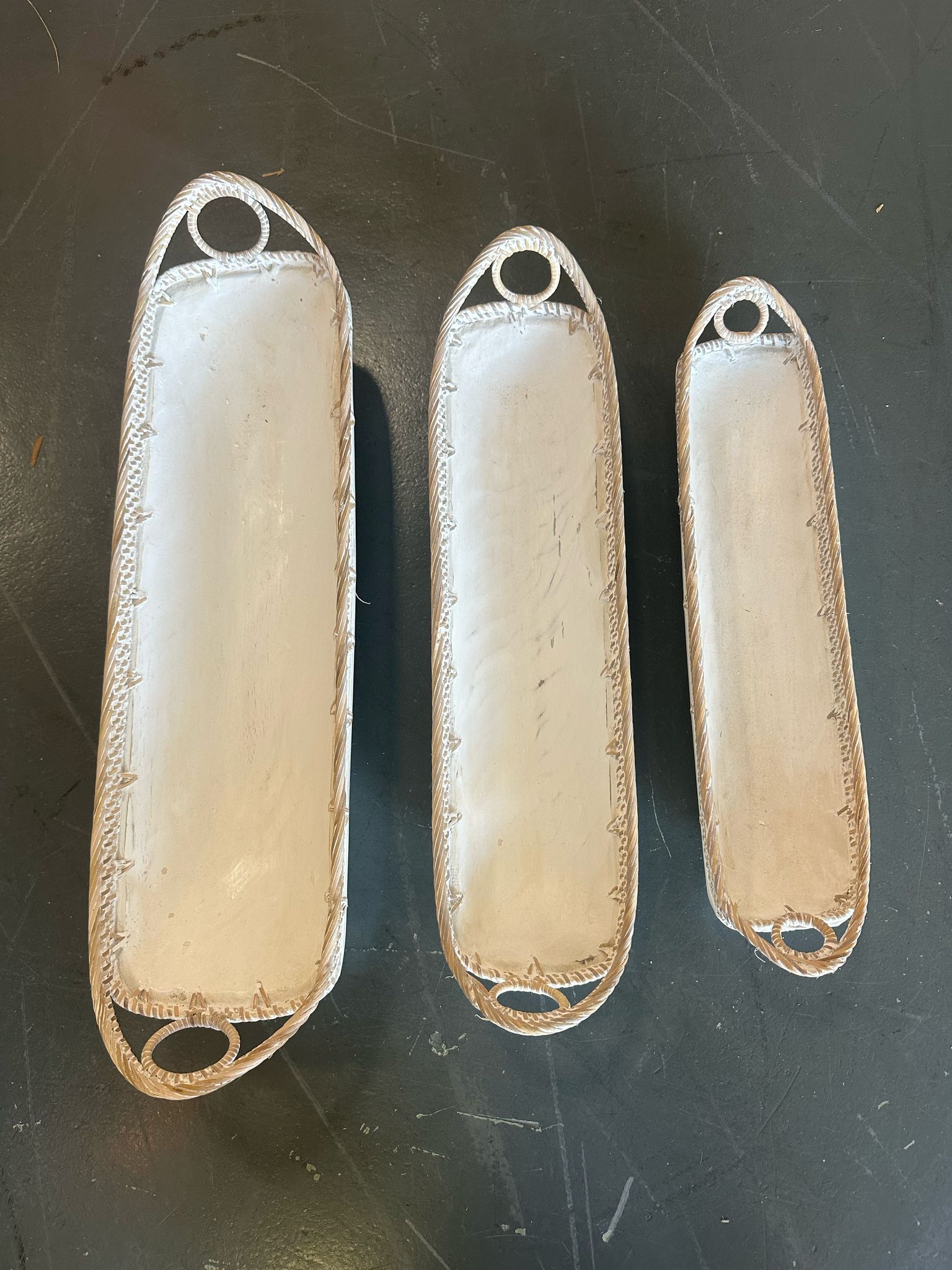 Wooden boatshaped bowls, set of 3 , Model Banda, Color : Whitewashed