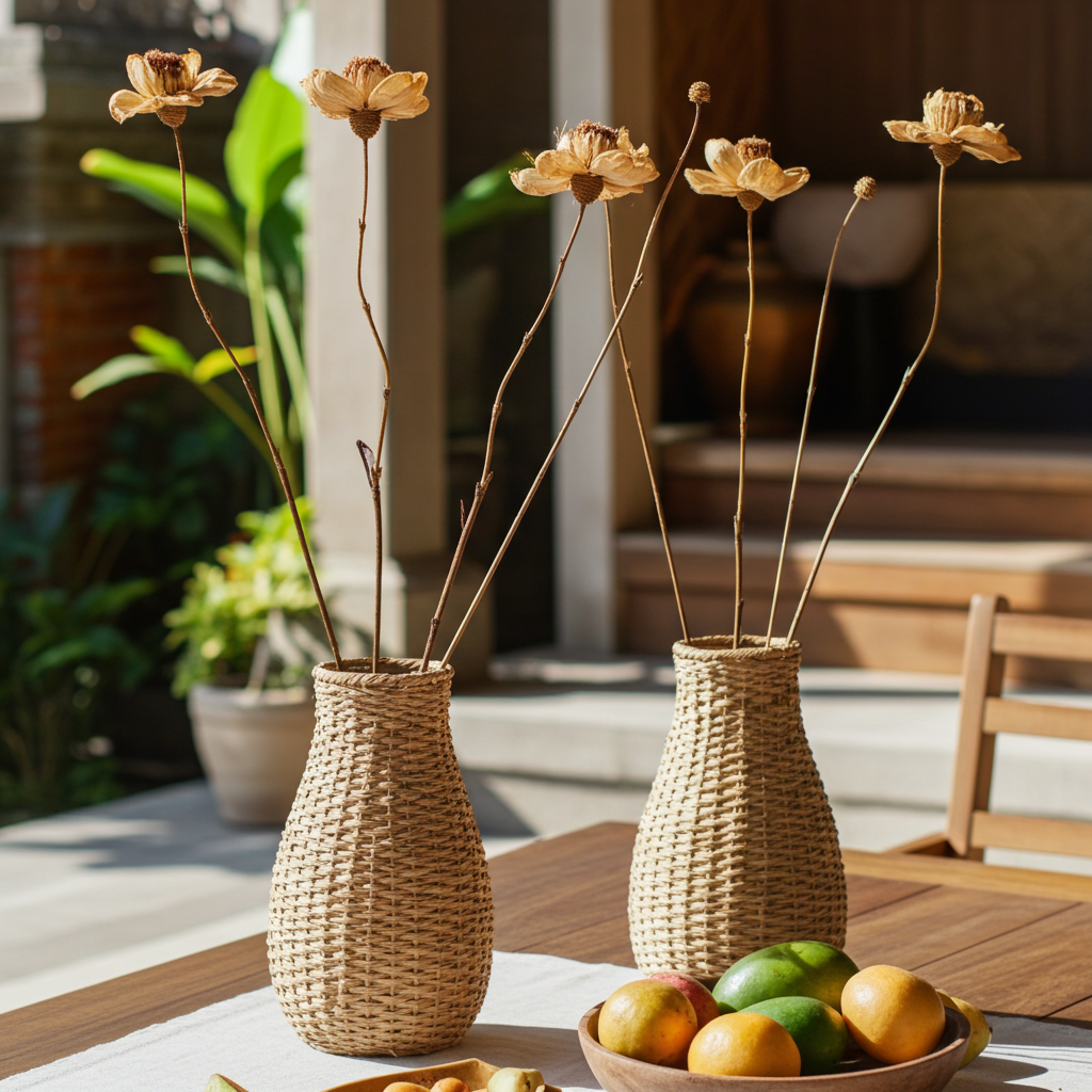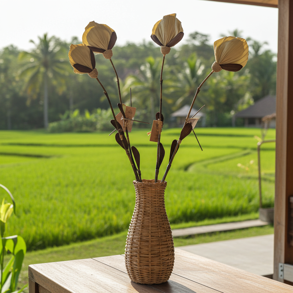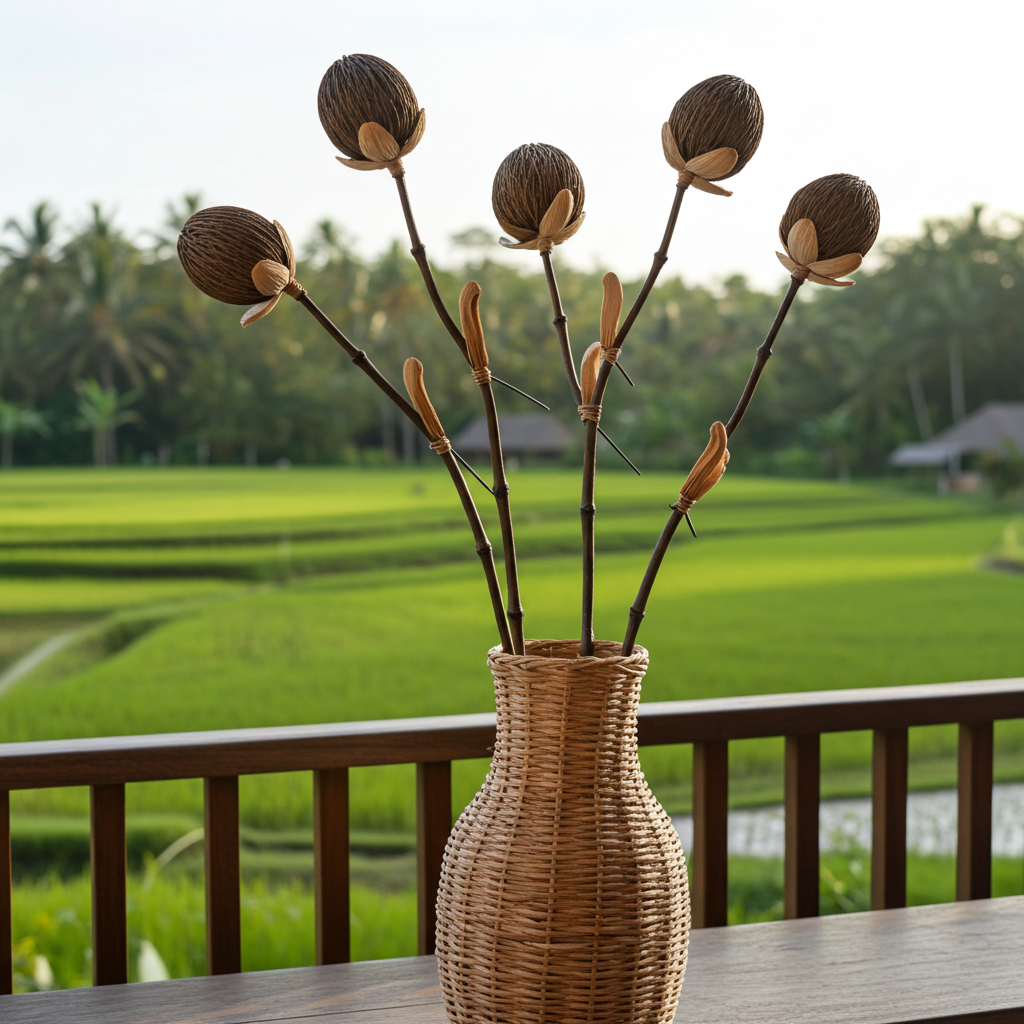Varetas decorativas artesanais de Bali, selecionadas pela nossa equipa. Perfeitas para decorar vasos artesanais como os que oferecemos na nossa loja.