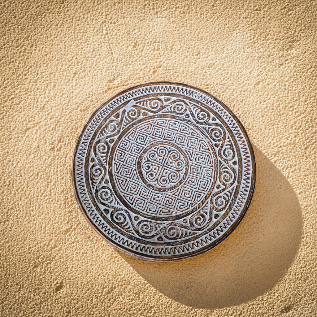 Prato decorativo em madeira esculpido à mão, com 40 cm de diâmetro. Modelo Rende.