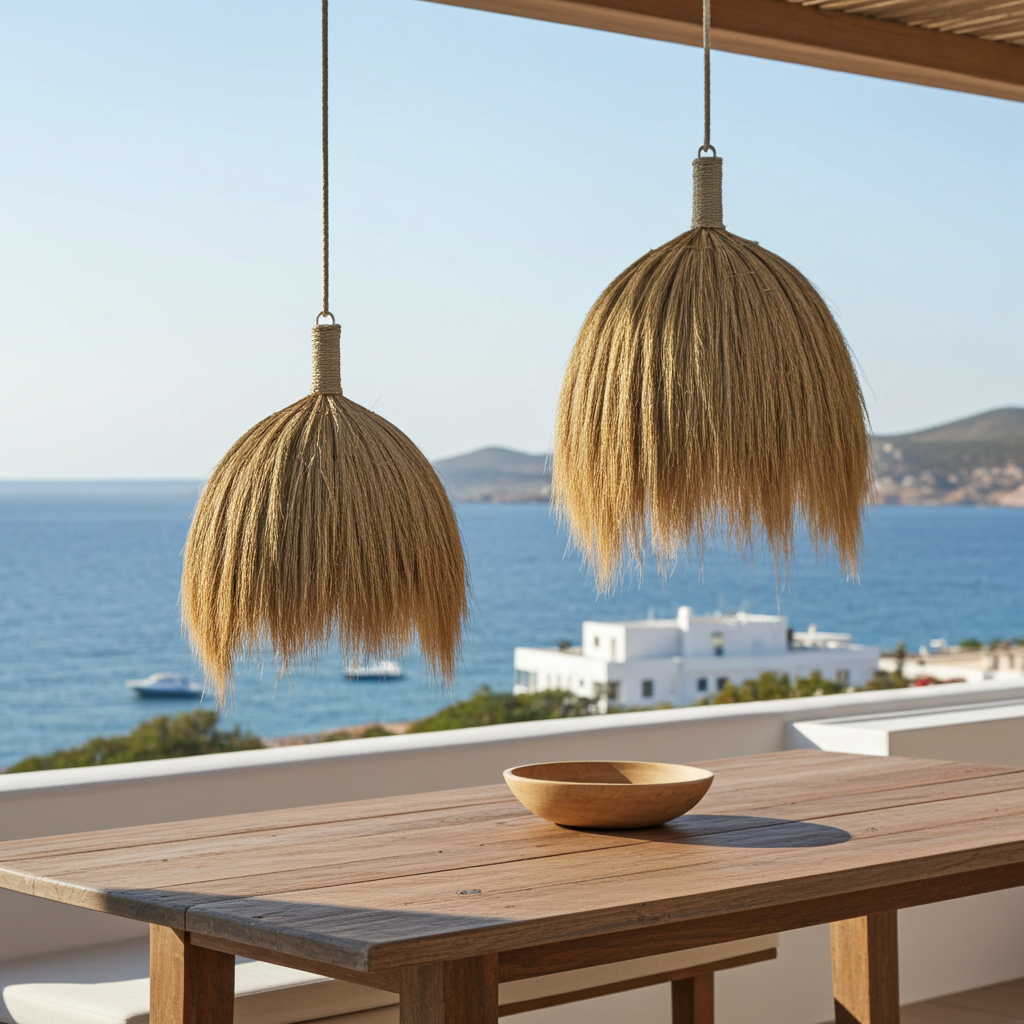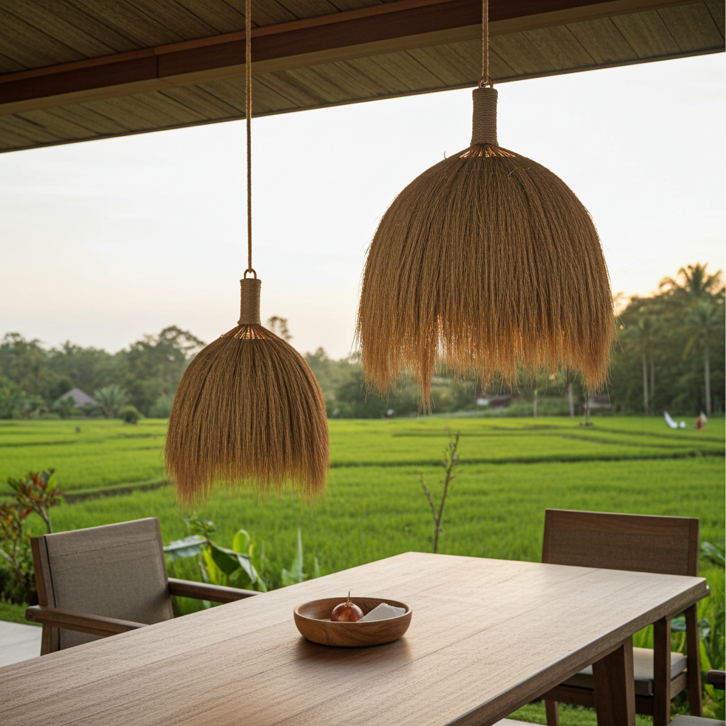 Candeeiro suspenso Modelo Bukit 40/60cm. Candeeiro suspenso feito de fibras naturais entrançadas.