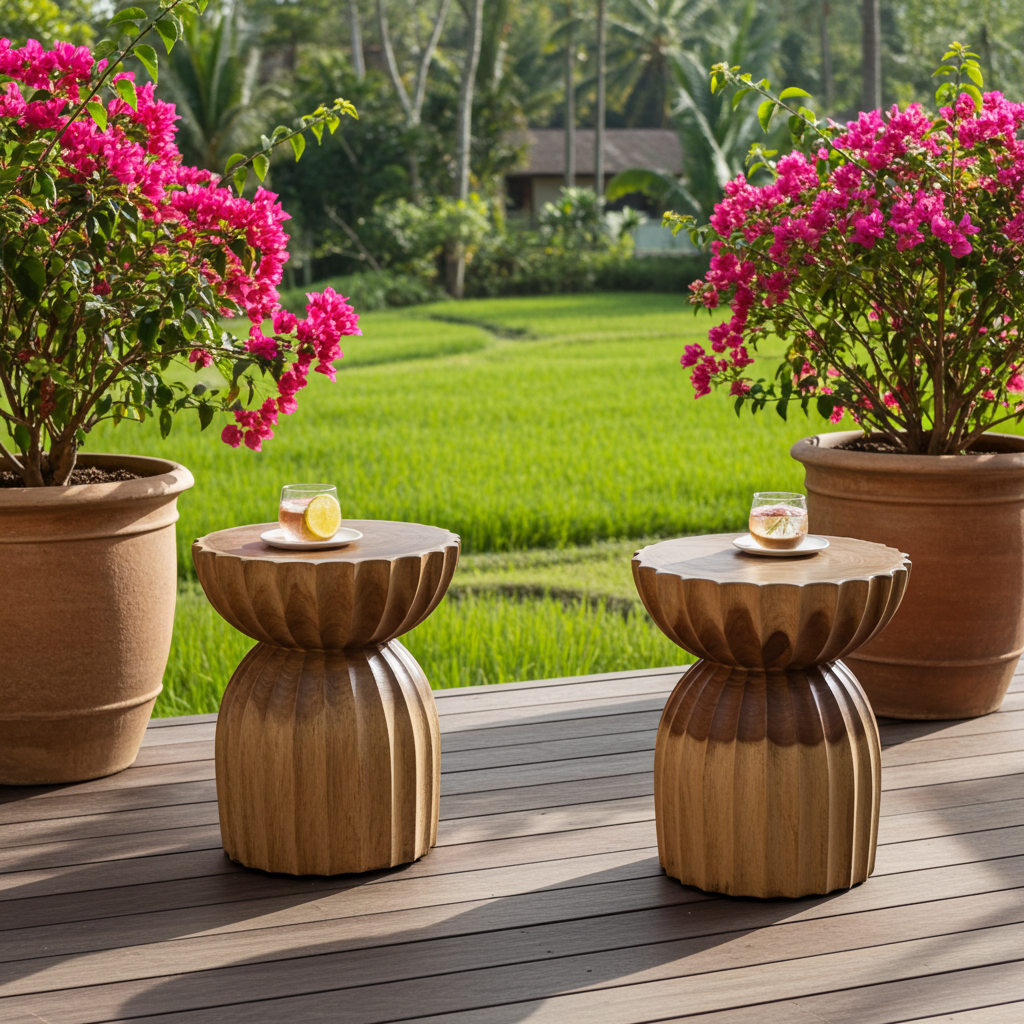 Banqueta Monkeypod em madeira maciça, modelo Pasir