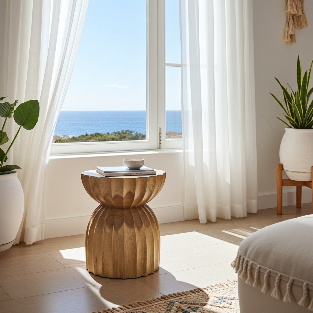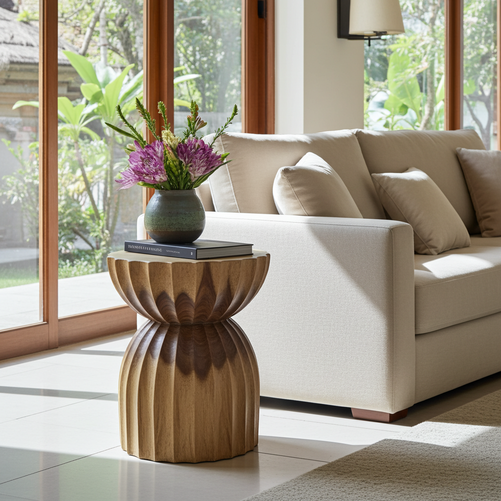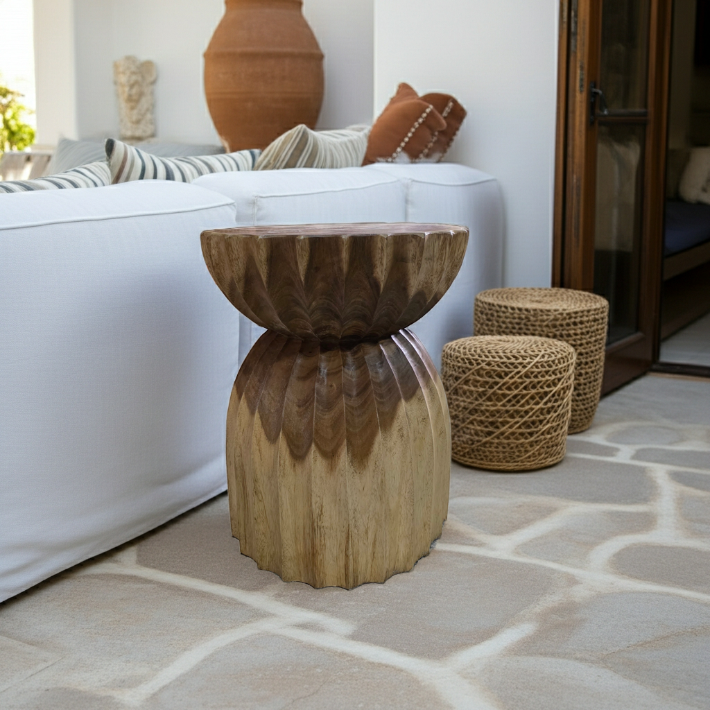 Banqueta em madeira maciça Monkeypod, modelo Pasir , esculpida à mão em madeira SUAR. Pode também ser utilizada como mesa de apoio ou peça decorativa na decoração da casa.