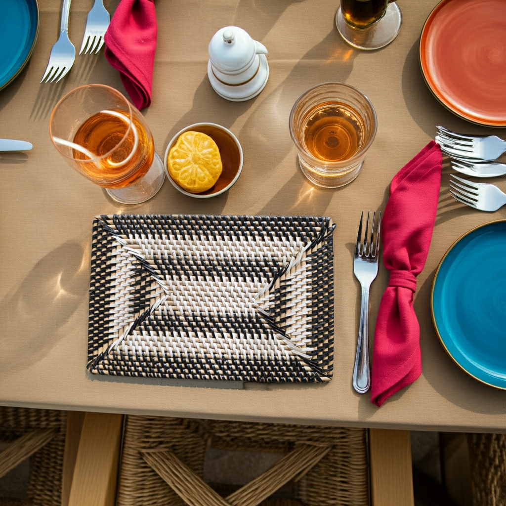 Pequeno individual de rattan feito à mão